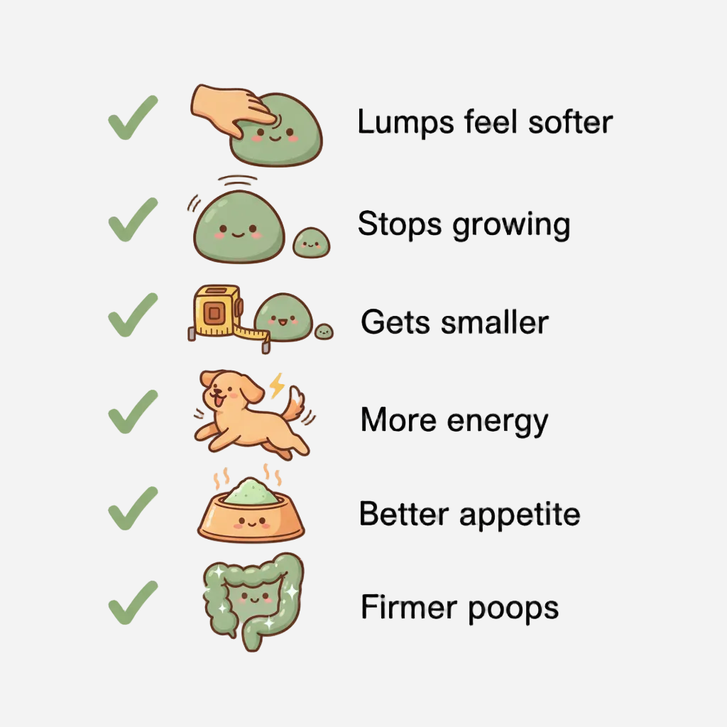 - Week 6-12: Most owners see lumps getting smaller or stopping growth
