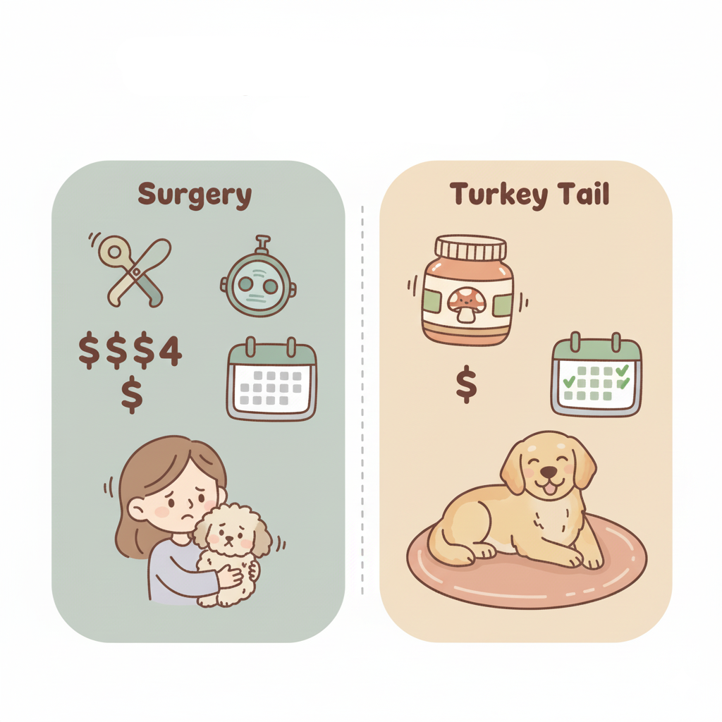 Turkey tail costs less than $2 per day. No anesthesia. No recovery time. And it helps prevent NEW lumps from forming by keeping your dog's system clean.